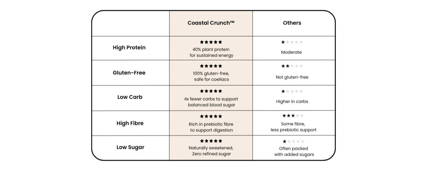 ✦ Every batch of Coastal Crunch is carefully crafted by our chef-led team to deliver the perfect balance of flavour, crunch, and clean nutrition.